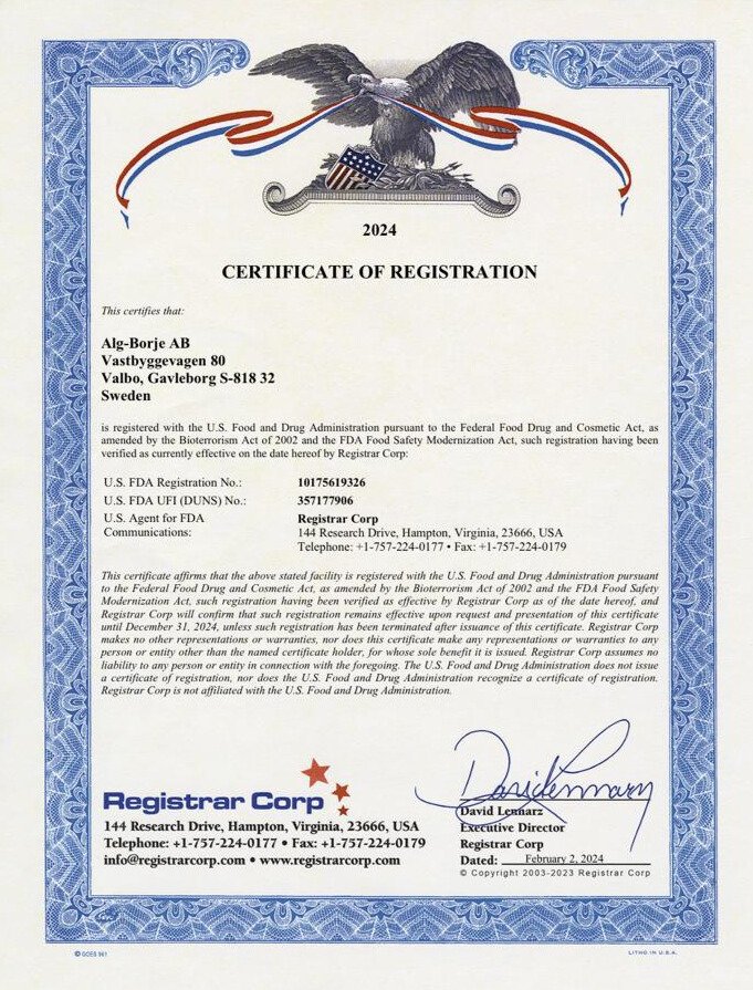 Algine Plus منتج عالمي مسجل في السويد ومعتمد من جهات رقابية أوروبية وكندية، ويُعتبر من أبرز المكملات الغذائية الطبيعية في العالم المستخلصة من الطحالب البحرية.